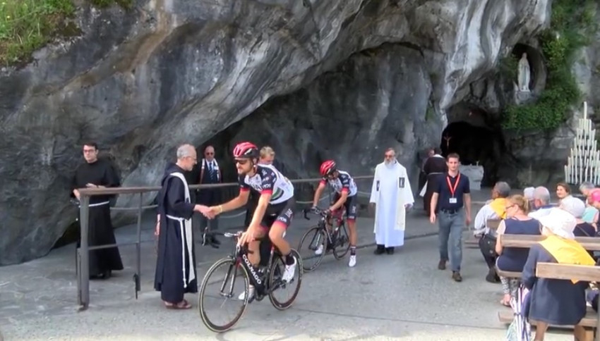 Lourdes az elmúlt hetven évben nem volt állomása a Tour de France-nak. Idén néhány versenyző megragadta az alkalmat, hogy imádkozzon a kegyhelyen, Mária közbenjárását kérje és gyertyát gyújtson a jelenések barlangjánál. Ellátogatott a kegyhelyre Julien Vermote belga, Guillaume Martin és Maxime Bouet francia, valamint Andrea Pasqualon és Oliviero Troia olasz kerékpáros is.