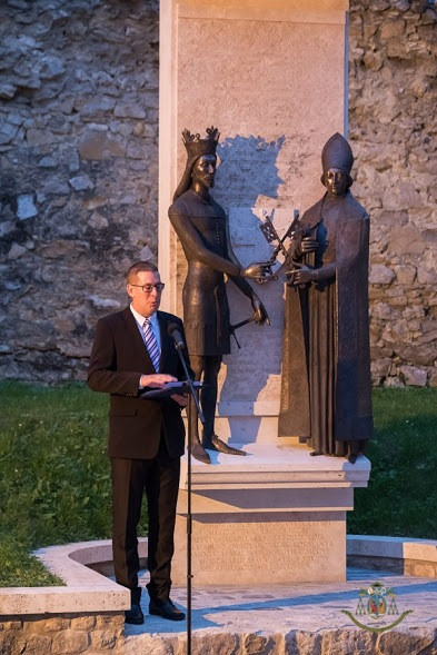 A záróáldást követően, hagyományteremtő szándékkal, a pécsi egyetem alapításának 650. évfordulóján átadott szobornál nyitotta meg a tanévet Udvardy György. Vilmos püspök és Nagy Lajos király szobra előtt Bódis József, a PTE rektora emlékeztetett, vegyük észre a mindennapjainkban a gyökereinket. Úgy fogalmazott: „Az egyetemi oktatás bölcsőjének helyszínén a hagyományok megerősítik a lelket.”