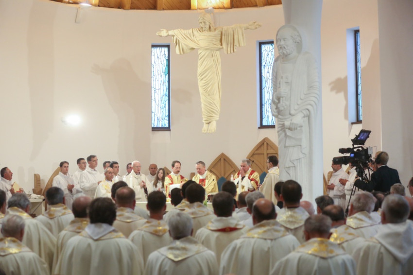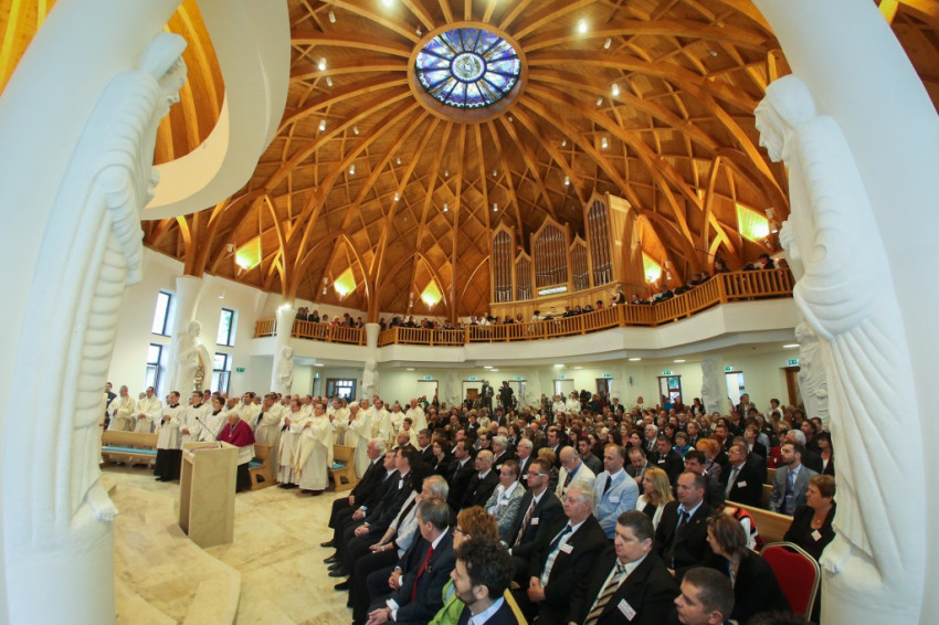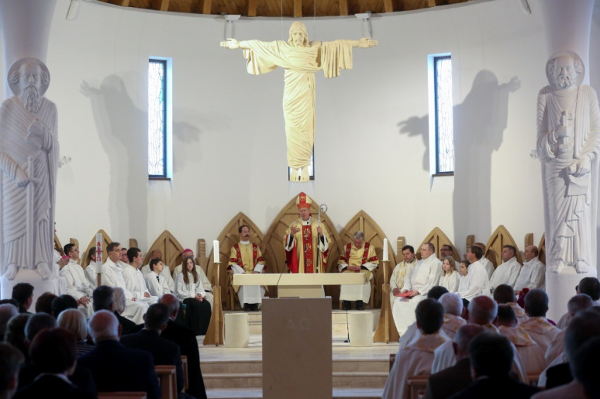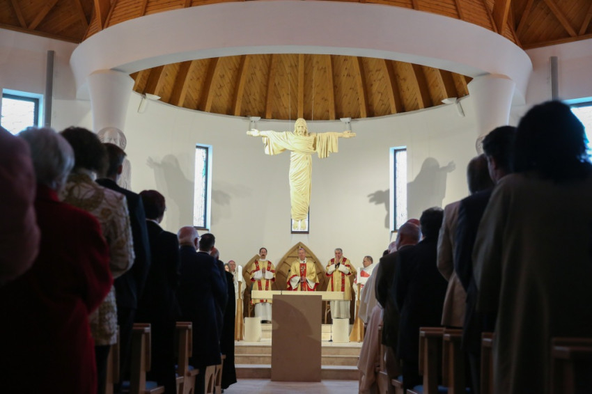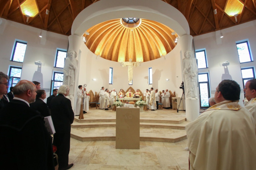 Az újonnan épült templom a mennyei Jeruzsálemet idézi föl – mondta a püspök –, ez a mi reménységünk, minden liturgiánkban ezt akarjuk átélni, az Istennel való nagy találkozást. Minden elővételező jelképe annak, amit Isten készít nekünk; az atyai ház ennek a templomnak a tükre.