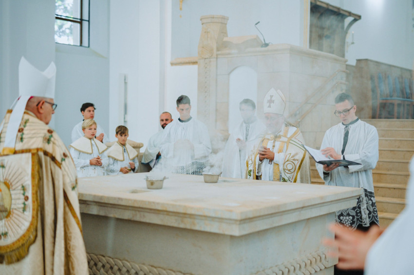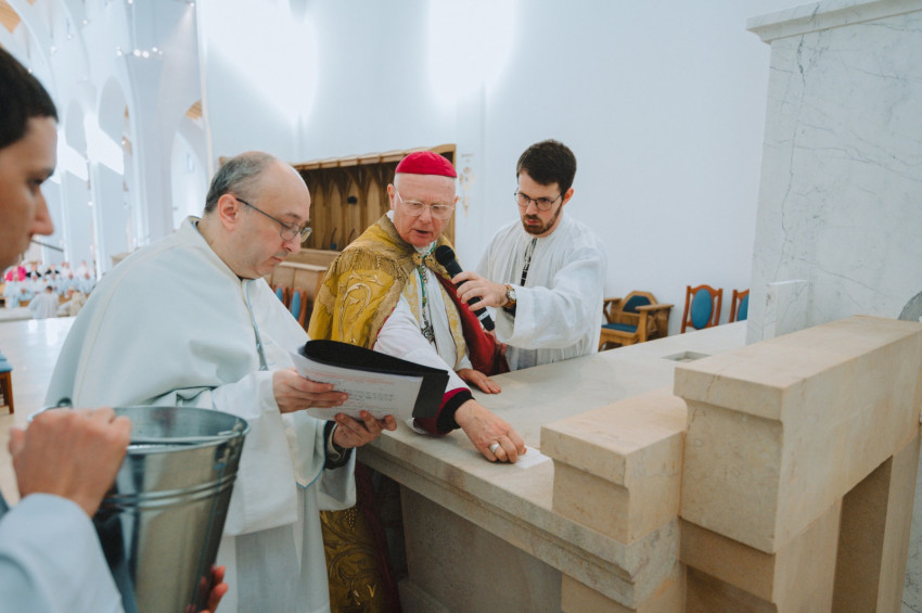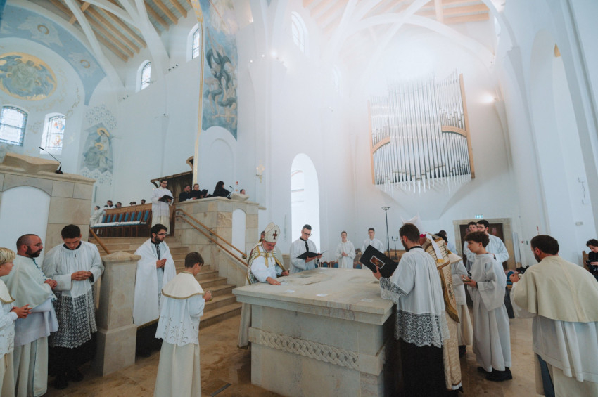 A liturgiákon premontrei szerzetesek és a Premontrei Kóruscsalád tagjai teljesítettek énekes szolgálatot. A szentelésen a hívek nagy létszámban vettek részt, a szentmisén pedig közel ezer fő; a templom előtti téren kivetítőn is követhették az eseményeket.