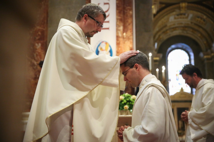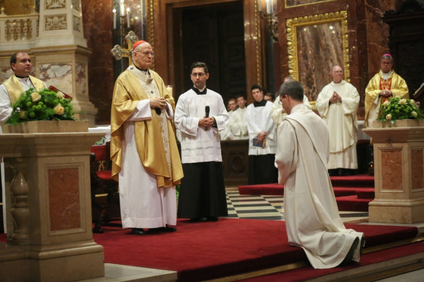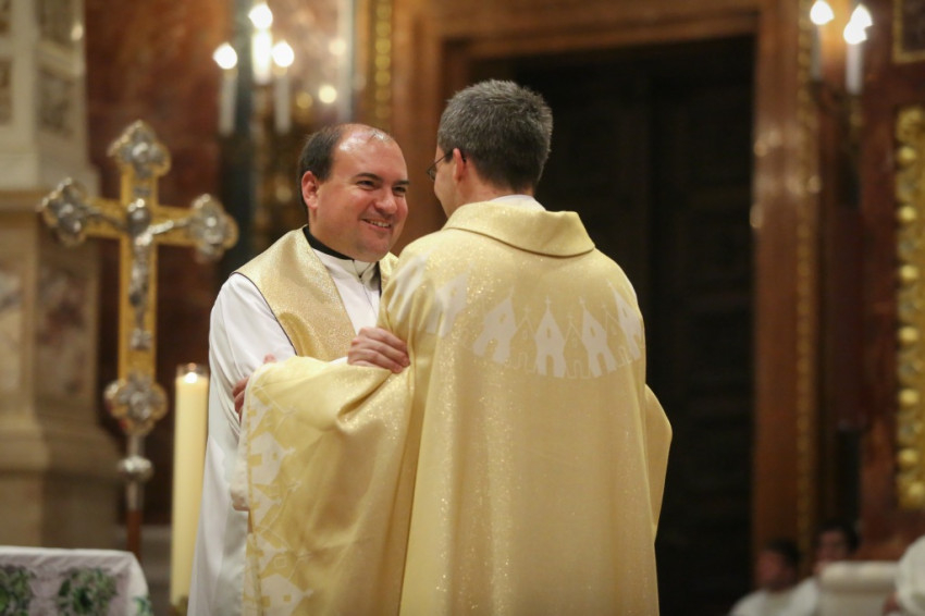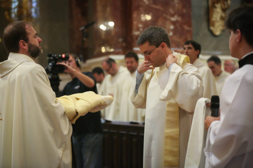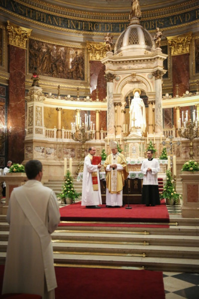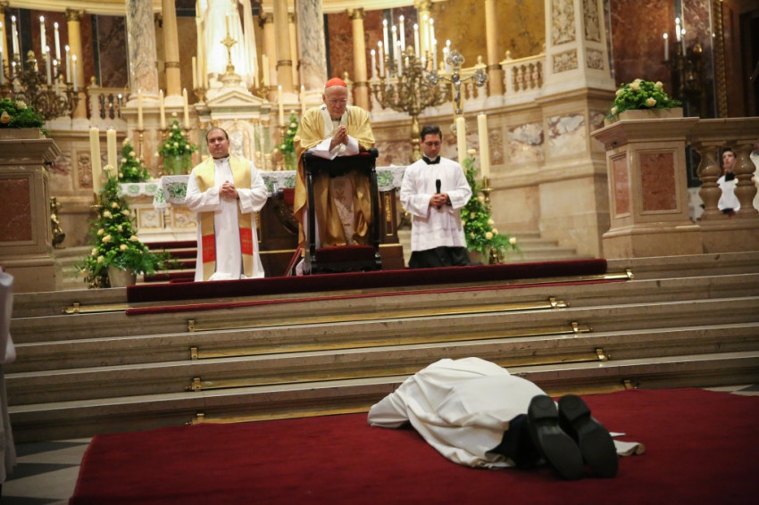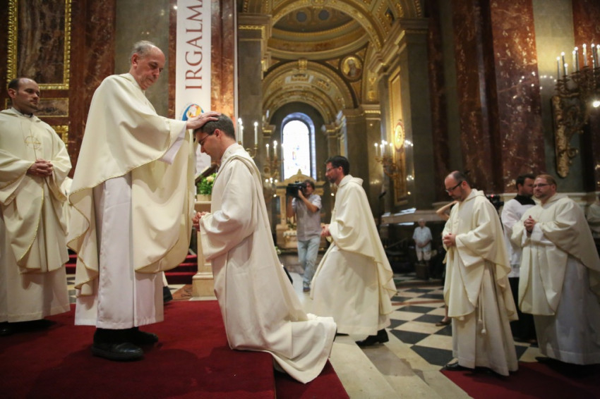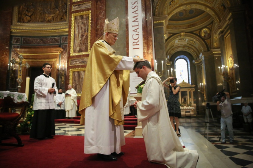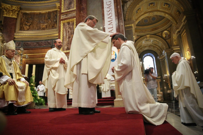 3. A papszenteléskor különleges módon részesülünk magának Krisztusnak a hármas küldetésében: prófétai, papi és pásztori feladatot kapunk. A felszentelt pap a szentmisében egyes szám első személyben mondja ki az átváltoztatás szavait, Jézus személyében cselekszik. Jelenvalóvá tesszük Isten kegyelméből Krisztus áldozatát, személyünkben ő maga akar eljutni minden kor minden emberéhez. Ezért olvassuk az evangéliumban, hogy Jézus elküldte tanítványait azokba a helységekbe, ahová menni akart (Lk 10,1). A mi szolgálatunkon keresztül is ő akar az emberekhez fordulni. Ez pedig számunkra egyszerre nagy felelősség és csodálatos hivatás, hiszen azt kell adnunk az embereknek, ami a legfontosabb, ami a leglényegesebb ezen a világon. A részleteket illetően minden hivatás a maga módján teszi szebbé, kellemesebbé, biztonságosabbá az emberek életét. A nagy művészek és a nagy gondolkodók még az élet egészéről, a létünk értelméről is tudnak szépet és igazat mondani. De a pap hivatása még ennél is többre szól: mi nemcsak beszélünk Istenről és a világról, hanem szentségi szolgálatunk révén személyes szeretetkapcsolatot tudunk építeni Isten és az emberek között. Valódi hídverőnek, pontifexnek kell lennünk! Ennek a küldetésnek az áldott és örömteli elfogadását és teljesítését kívánom újonnan szentelendő testvérünknek, mindannyiunk javára! Ámen.