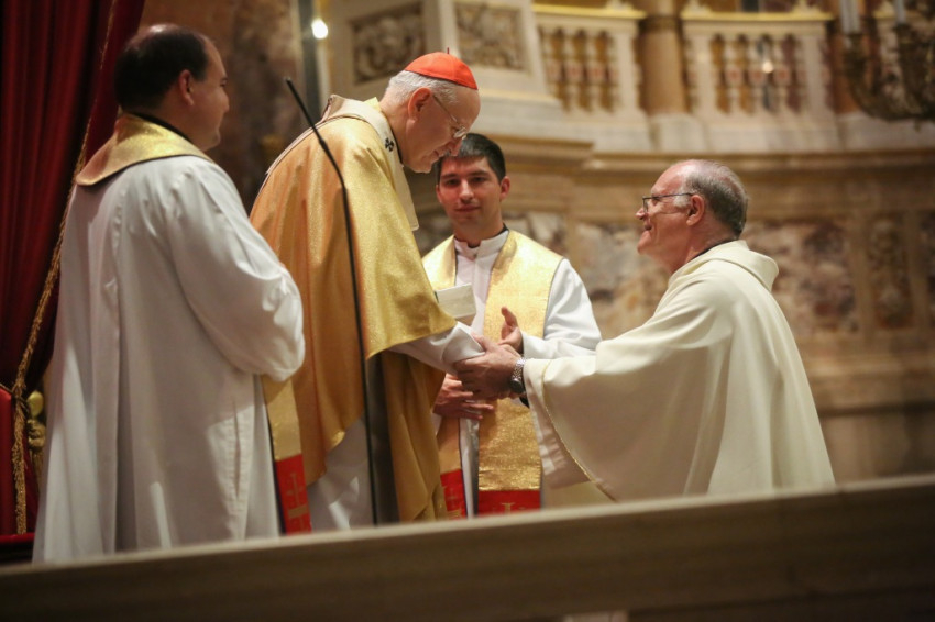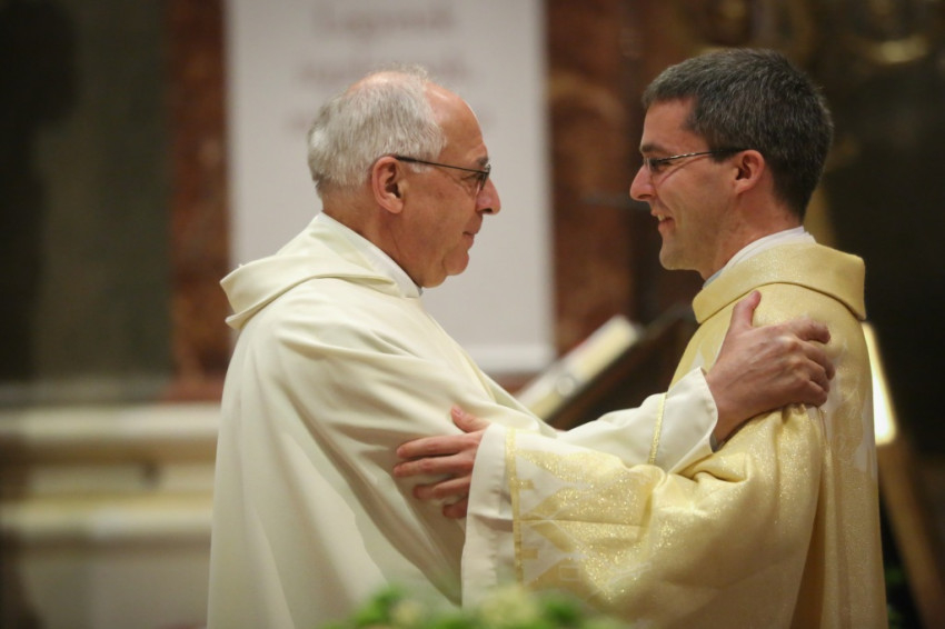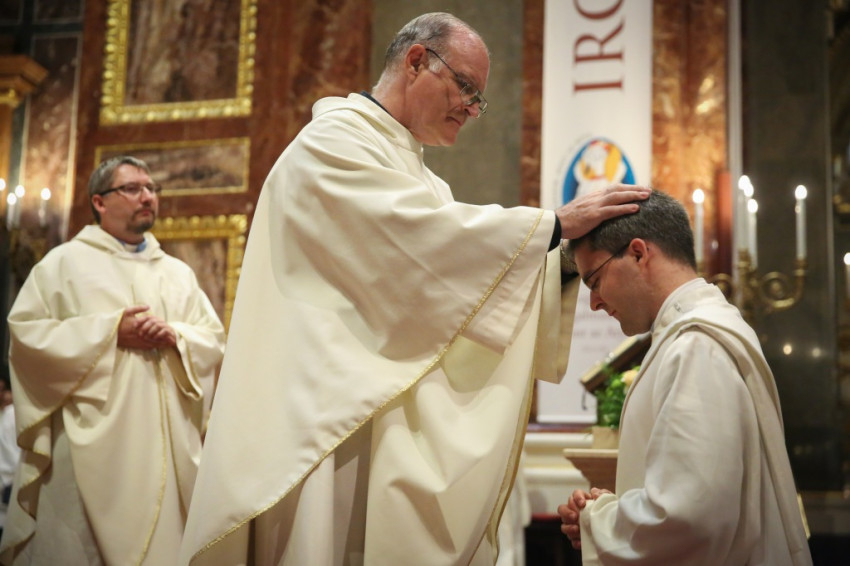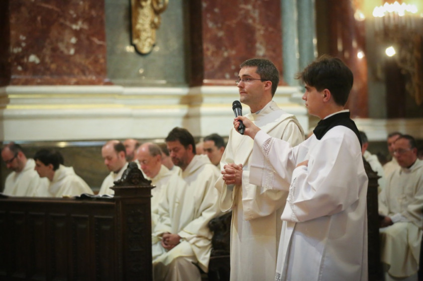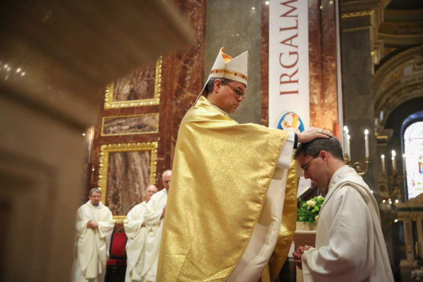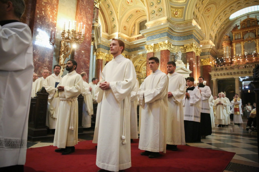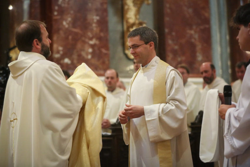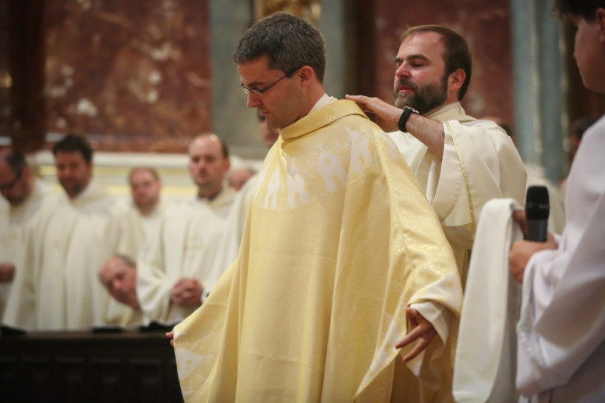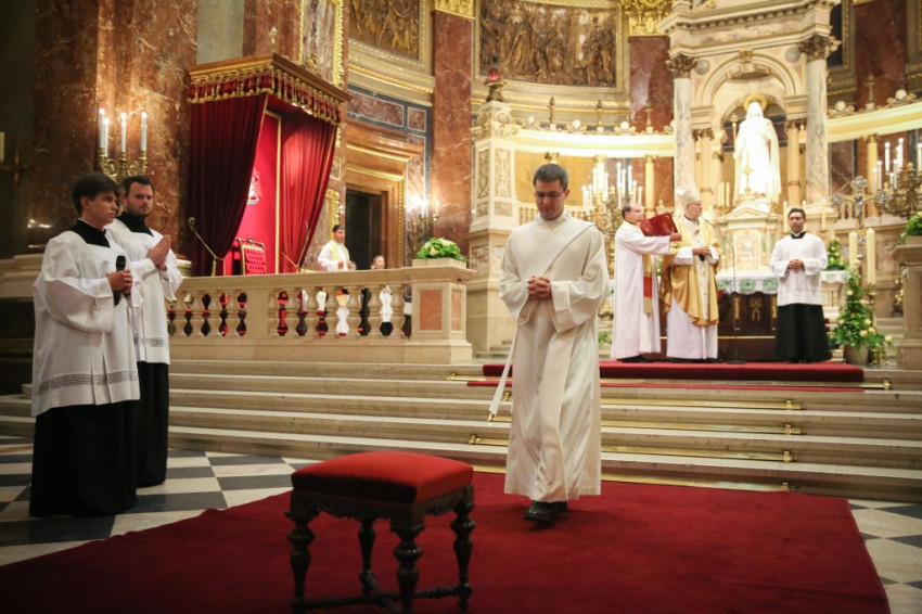 3. A papszenteléskor különleges módon részesülünk magának Krisztusnak a hármas küldetésében: prófétai, papi és pásztori feladatot kapunk. A felszentelt pap a szentmisében egyes szám első személyben mondja ki az átváltoztatás szavait, Jézus személyében cselekszik. Jelenvalóvá tesszük Isten kegyelméből Krisztus áldozatát, személyünkben ő maga akar eljutni minden kor minden emberéhez. Ezért olvassuk az evangéliumban, hogy Jézus elküldte tanítványait azokba a helységekbe, ahová menni akart (Lk 10,1). A mi szolgálatunkon keresztül is ő akar az emberekhez fordulni. Ez pedig számunkra egyszerre nagy felelősség és csodálatos hivatás, hiszen azt kell adnunk az embereknek, ami a legfontosabb, ami a leglényegesebb ezen a világon. A részleteket illetően minden hivatás a maga módján teszi szebbé, kellemesebbé, biztonságosabbá az emberek életét. A nagy művészek és a nagy gondolkodók még az élet egészéről, a létünk értelméről is tudnak szépet és igazat mondani. De a pap hivatása még ennél is többre szól: mi nemcsak beszélünk Istenről és a világról, hanem szentségi szolgálatunk révén személyes szeretetkapcsolatot tudunk építeni Isten és az emberek között. Valódi hídverőnek, pontifexnek kell lennünk! Ennek a küldetésnek az áldott és örömteli elfogadását és teljesítését kívánom újonnan szentelendő testvérünknek, mindannyiunk javára! Ámen.