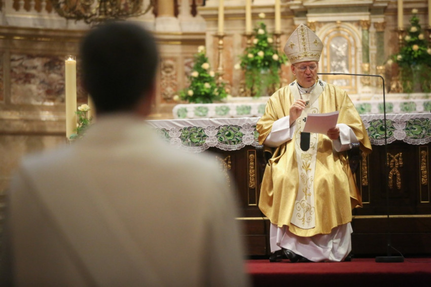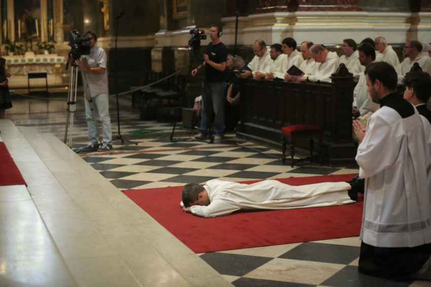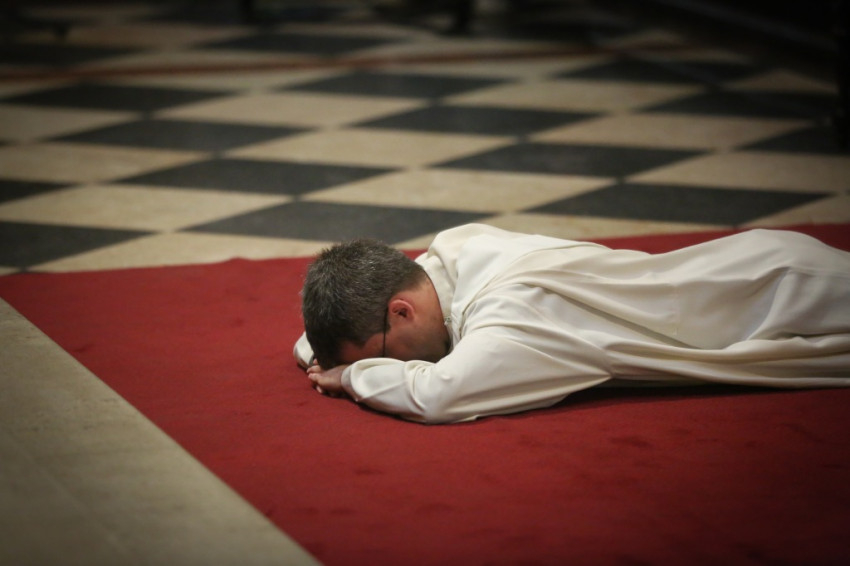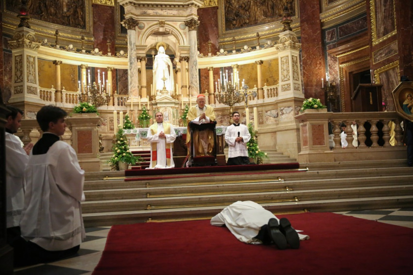 A liturgia ezután Csermák Péter ígérettételével folytatódott, majd a Mindenszentek litániája következett. A jelölt leborult a földre a teljes önátadás kifejezéseként.