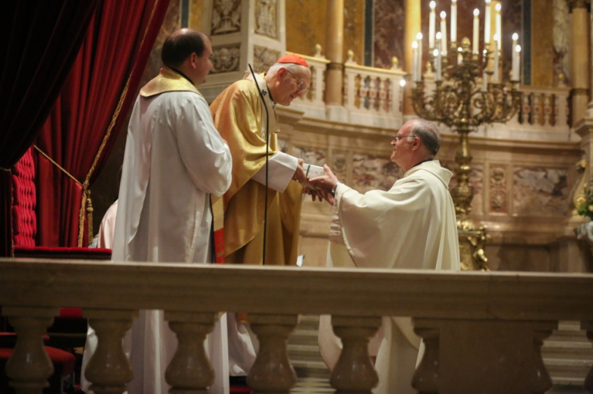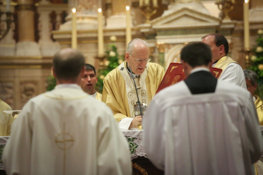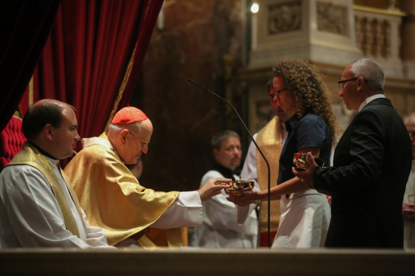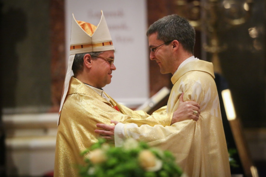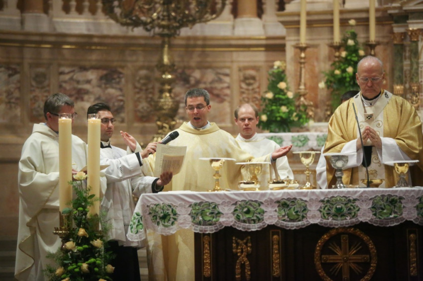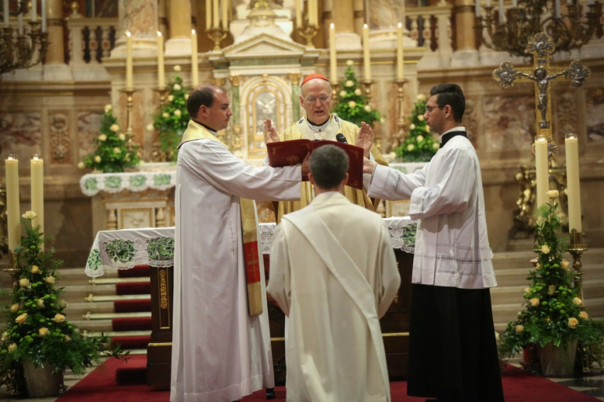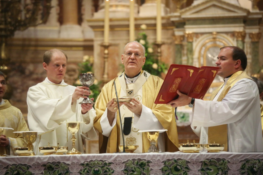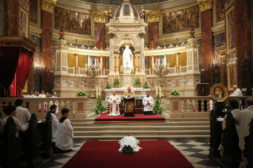 A szentelési szertartás a német és magyar nyelven felolvasott evangélium után kezdődött, Erdő Péter ennek keretében mondta el homíliáját, melyet az alábbiakan teljes terjedelmében közölünk.