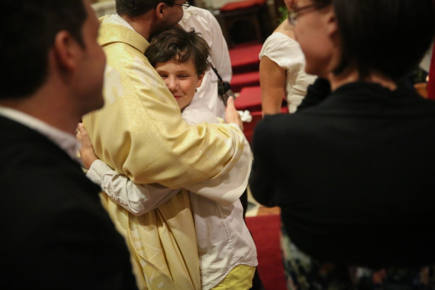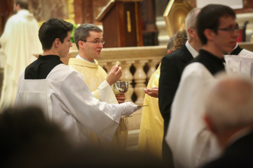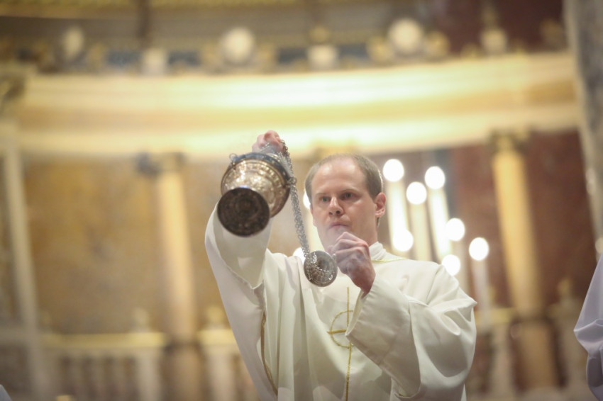 Ezután a szentséget kiszolgáltató főpásztor mint az apostolok utóda imádság és kézrátétel által átadta a Krisztustól kapott hatalmat és küldetést, a beöltözés után megkente Csermák Péter kezét krizmával, majd imádkozott az új áldozópapért.