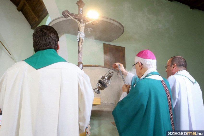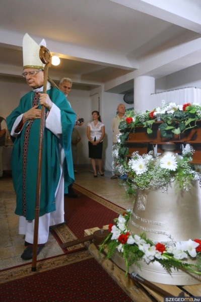 A harangszentelő szentmise prédikációjában Gyulay Endre, a Szeged-Csanádi Egyházmegye nyugalmazott püspöke elmondta, a harang hívogat, igazságot hirdet: Krisztusét, az evangéliumét, az örömhírét. „Hívogat a harang, gyere! Jézus azt mondja, jöjjetek hozzám mindnyájan, fáradtak és terhelve vagytok, és én felüdítelek titeket” – fogalmazott. A harangnak van egy másik szava is: »Jöjjetek ide a templomba, mert halottunk van, egy közületek.« Ezeken felül minden veszélyben szól nekünk a harang, félreverték például tűzesetkor, így figyelmeztetve, hogy segítsünk másoknak. A harang hangja segítségül van abban is, hogy felmelegedjünk Krisztusnál, és az igazság tényét megkapjuk tőle. „Krisztusnak ezt a fényét és melegét kellene elvinni, és a harang szava figyelmeztessen erre bennünket, mert csak akkor lesz igazán egyenes utunk az Isten felé, teljes célba érkezésünk, ha Jézus példáját komolyan vesszük, amire a harang szava is figyelmeztet bennünket” – fogalmazott Gyulay Endre.