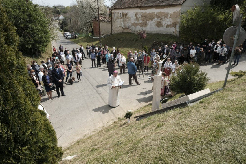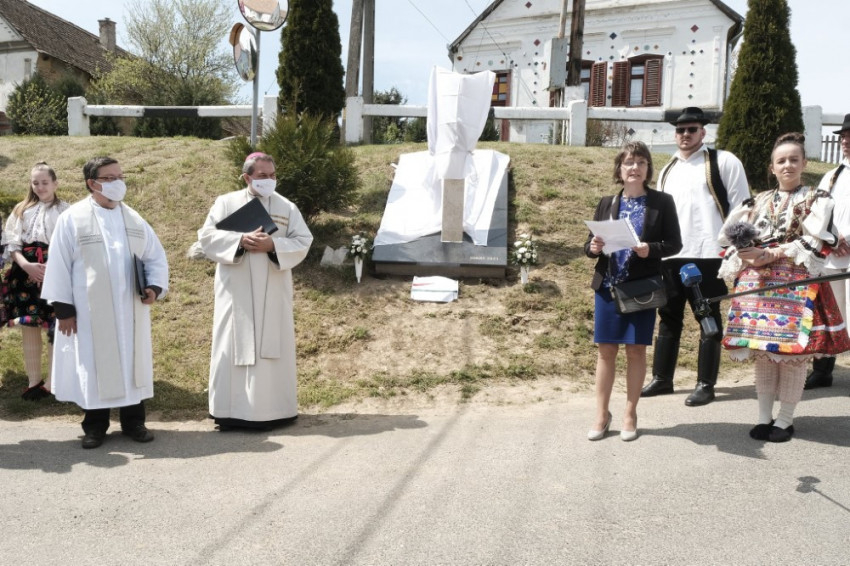 Az elnök beszédét követően a falu polgármestere és a horvát nemzet képviselője leplezte le a műalkotást, melyet Felföldi László pécsi megyéspüspök áldott meg.