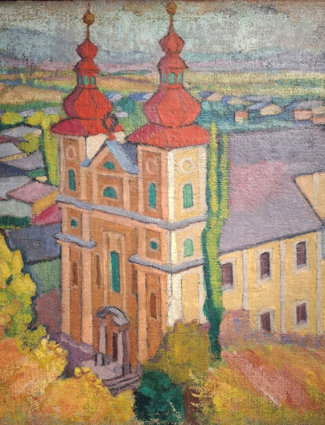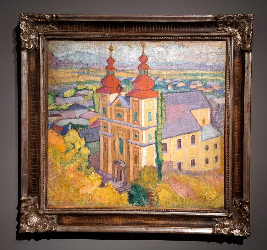 A továbbiakban Galimberti Sándor és Dénes Valéria szépséges, nyugalmat árasztó, többségében Nagybányán készült tájképeit csodálhatjuk meg. Az István toronyból remek kilátás nyílik a városra és a templomra. Többen is készítettek képet innen az itt alkotó művészek közül, mint például Lanov Mária Lelátás az István toronyból címmel. A legismertebb kép talán Ziffer Sándoré, akinek a piros cserepes barokk plébániatemplom tetszett meg.
