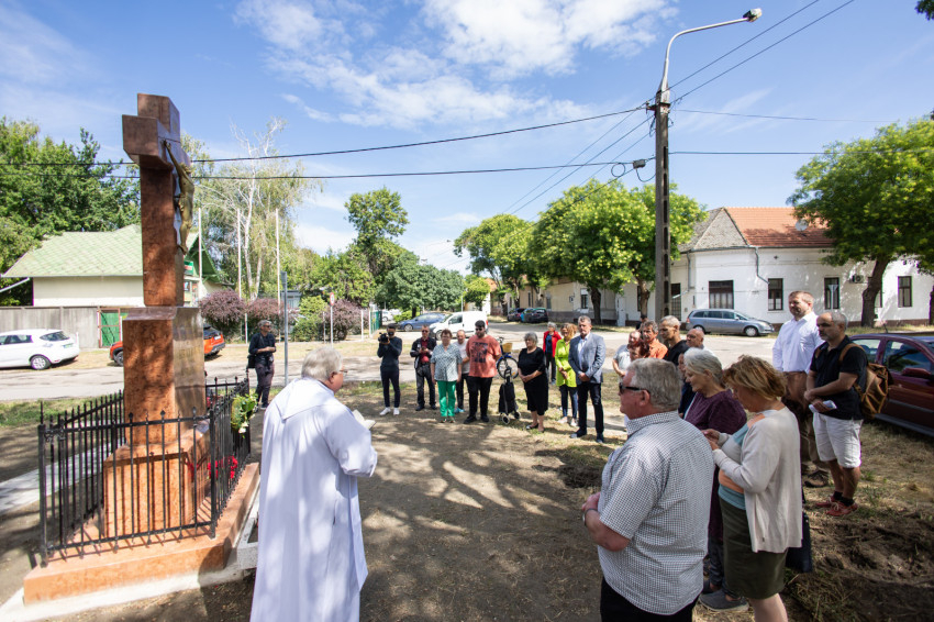 Király Sándor és Gyürkó Mária 1892-ben állították egykor a keresztet, a legendárium szerint hálából. Ez a kereszt az egyik abból a közel hetvenből, amelyeket a Karol Wojtyła Barátság Központ együttműködve a Porta Egyesülettel város, megye és országszerte megmentett. Maroknyi csapat gyűlt össze az eseményre, őket Farkas Pál, a Wojtyła-ház munkatársa köszöntötte.