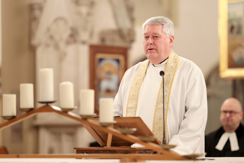 Felidézte néhány évvel ezelőtt Kárpátalján tett látogatását: tele volt a templom, hétköznap, munkaidőben. Együtt énekelték a „Mindig velem, Uram” református éneket, bajban, örömben, küzdelemben. (Az ének a mostani imaesten is elhangzott.) „Ez tartott bennünket életben. Az Úr velem van, mindig velem van.” Jézus mondta: „Nekem adatott minden hatalom, égen és földön… Én veletek vagyok mindennap, a világ végezetéig!” „Itt van Isten. Ne csak nézz, de láss! Mert egészen közel van az Úr!”
