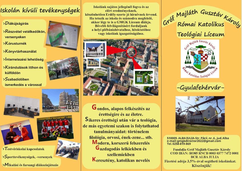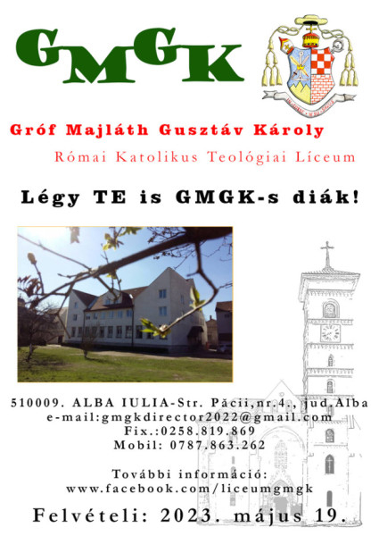 Kérik, hogy a felvételizni szándékozók jelentsék ezen szándékukat a GMGK líceum igazgatóságán személyesen, szüleik, plébánosuk vagy iskolai hitoktatójuk révén az adataik nyilvántartásba vételéért.