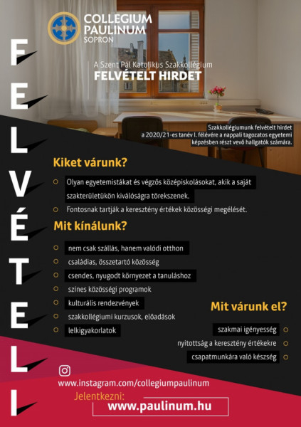 A jelentkezési kérelem benyújtásának módjáról és a további részletekről az intézmény megújult honlapján lehet tájékozódni. A jelentkezés határideje: 2020. augusztus 6.