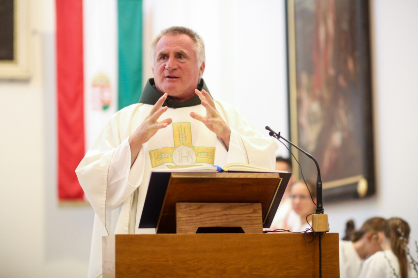 A szentbeszédben arra hívja fel a figyelmet a ferences szónok, hogy mindannyiunknak támogatnunk kell a Föld nevű projektet, amelyet Isten nem azért hozott létre 4 és fél milliárd éve, hogy most kipukkanjon. Ha a Jóisten azt kéri tőlünk, hogy építsük fel a szeretet országát, akkor ezt nem azért teszi, mert nem lehetséges. Simone Weil, a zsidó származásáért meghurcolt francia katolikus filozófus, misztikus mondta, hogy a földön minden véges, egyedül Isten irgalma végtelen. Ha pedig véges, akkor mindent meg lehet beszélni, mindent helyre lehet rakni – biztat Csaba testvér. A szerzetestől egy statikus egyszer megkérdezte, hogy ha most három cserép leesik egy ház tetejéről, akkor mennyi idő alatt omlik össze az épület. Erre ő meghökkentő módon így válaszolt: egyáltalán nem fog, mert én felrakom azt a cserepet.