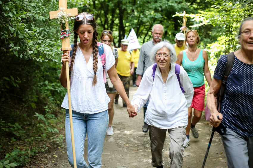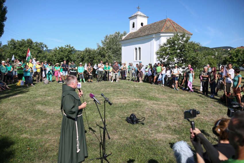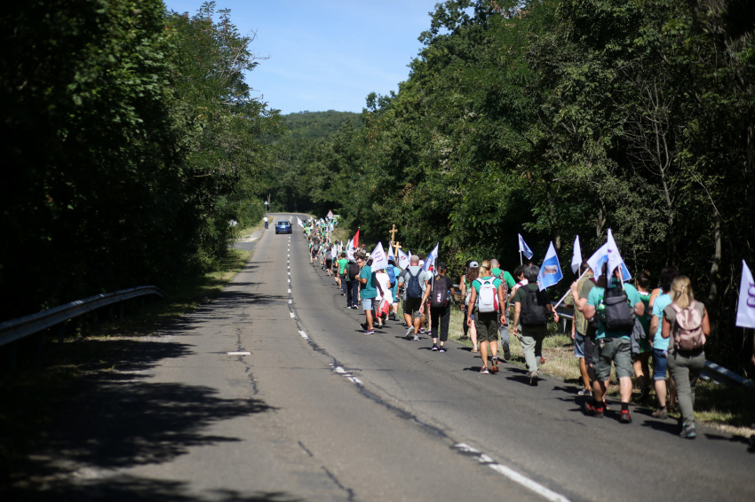 A zarándokok Ferenc pápa Laudato si’ kezdetű, nemcsak a természetről, hanem az emberi társadalomról is szóló zöld enciklikájának az első bekezdéseit hallgathatják meg útravaló gyanánt, majd Pilisszentlászló felé vesszük utunkat, a Mária Út önkéntesei által vezetett negyven-ötven fős keresztaljákban.