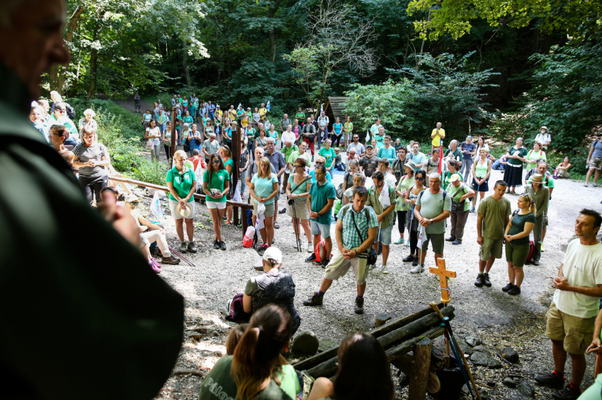 „Bűnbánati zarándoklatra jöttünk, képesek vagyunk jobbak lenni. Olvassunk naponta egy-egy kis fejezetet a Laudato si’-ből, hagyjuk, hogy Ferenc pápa a jóra vezessen bennünket!” – javasolja mintegy házi feladatul a zarándoklat kitalálója. Isten a semmiből elhozta idáig a világot, és nem fáradt bele, tegyük mi is a magunk dolgát! – buzdít. Egyik útitársam is valami hasonlót mondott a patakparton sétálva: elvárhatjuk a gazdaság szereplőitől, a politikusoktól, hogy tegyenek meg mindent a környezet védelméért, és szidhatjuk őket, ha nem teszik, de ezzel nem megyünk sokra. Ám ha a magunk helyén megtesszük, amit tehetünk, akkor a legtöbbet tettük. Jó látni, hogy a visegrádiak így is cselekszenek: nem palackos vizet lehet venni az agapénál, hanem jó kis helyi vízzel frissülhetünk fel.