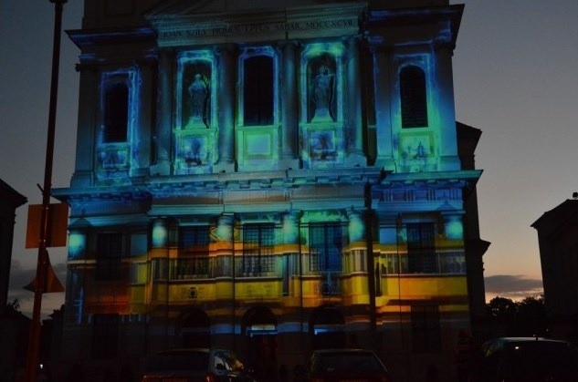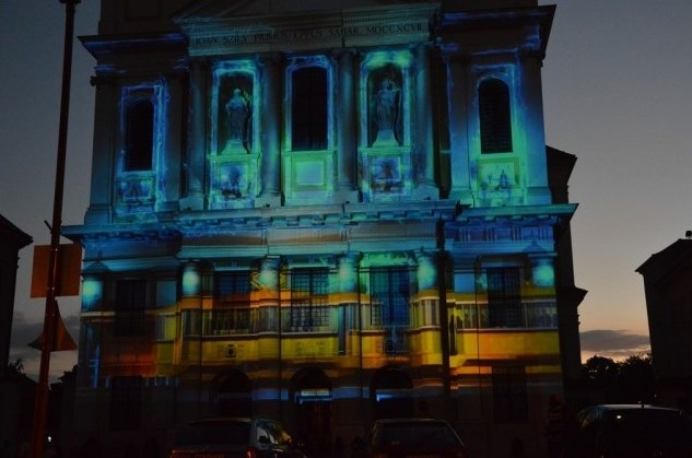 Nem mindennapi látványban lehet részük azoknak, akik a következő hetekben Szombathelyen a székesegyház felé sétálnak az esti órákban. Szombathely kétezer éves történelme elevenedik ugyanis meg a templom homlokzatán: a római kor, Szent Márton kora, a székesegyház felépítése, a vasút és a villamos megjelenése, a város II. világháborús pusztulása, az újjáépítés.