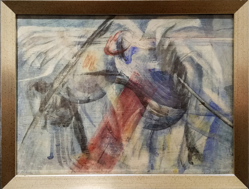 A húszas, harmincas években az art déco volt rá nagy hatással, azonban korántsem csupán stilizált növényi mintákat, hanem figurális kompozíciókat is tervezett és kivitelezett homokfúvással is, nem csak csiszolással. Szakrális témákat is szívesen választott. Egy kereszt formájú üveglapon láthatjuk a felfeszített Krisztust; az alkotás csiszolt és hámozott technikával készült. A Diadalmas Krisztus angyalokkal című üvegplakettje az 1937-es párizsi világkiállításon szerepelt. Színtelen, átlátszó, intaglio (mély) csiszolt síküveg.