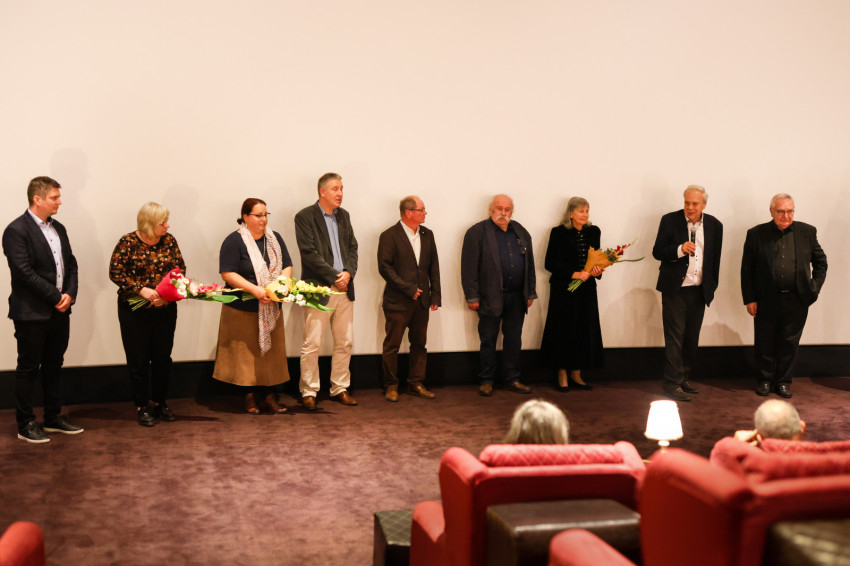 A Cinema MOM-ban tartott vetítés végén – a díszbemutatók hagyományaihoz híven – Oberfrank Pál egyenként szólította a vászon elé a film elkészítésében részt vevő stábtagokat.