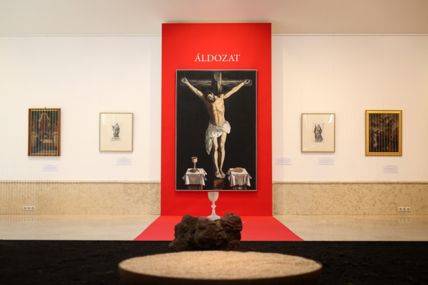 – Az ikonográfiai szempont volt az elsődleges, azaz hogy az Eucharisztiával összefüggő hagyományos képtípusokat jelenítsük meg. A rendelkezésre álló terem méreteihez igazodva csak egy-egy példával tudtuk szemléltetni ezeket. A Keresztény Múzeum anyagából a középkortól a kortársakig, különböző művészettörténeti korokból emeltünk ki képeket. A válogatással megmutathatjuk, hogy a maga stílusában minden korszak folyamatosan foglalkozott az Eucharisztiával. Valóban különleges, önálló egységet képez Settegast említett historizáló ciklusa, amely a Münsterben ma is látható templomi falképsorozat akvarell-redukciója. Két középkori táblakép szerepel a tárlaton, mindkettő a XV. század második felében készült: az egyik egy salzburgi munka, a Királyok imádása, a másik egy ismeretlen (talán magyarországi) festő műve, a Fájdalmas Krisztus. A teológiai mondanivaló íve tekintetében a kiállítás képei egy ószövetségi előképet (Szántó Piroska: Ábrahám és a látogatók), Jézus földi megjelenését, az Oltáriszentség alapítását, a keresztáldozatot és az Eucharisztia jelenvalóságát tükrözik. A fő csomópontokat a nagyobb méretű alkotásokkal jelöltük ki: az említett Királyok imádásával, Kisléghi Nagy Ádám 1992-ben készült Kenyér és bor-képével, valamint Atlasz Gábor Emmauszi vacsorájával.