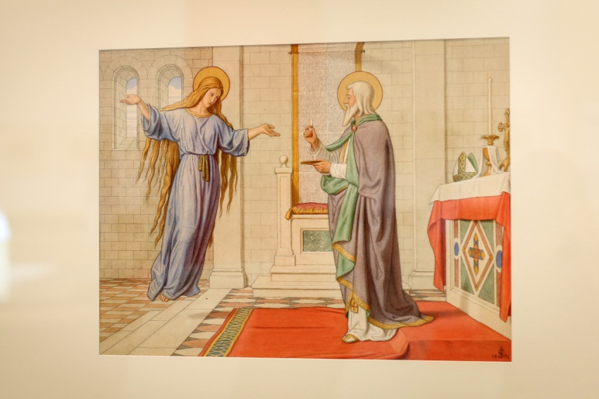 – A mostani kiállításon összekötő motívumként jelenik meg Joseph Anton Nikolaus Settegast tizenkét, az Oltáriszentséggel kapcsolatos (XIX. századi) akvarellje, de a tárlat spektruma a gótikus táblaképektől a kortárs installációig terjed. Mi volt a válogatás szempontja, a koncepció lényege?