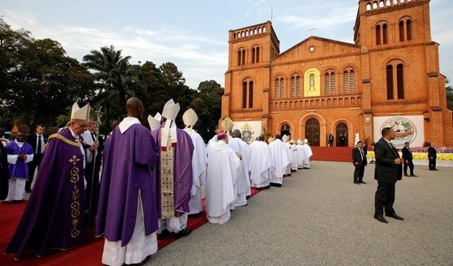 Felszólítom mindazokat, akik e világ fegyvereit használják igazságtalan módon: tegyétek le ezeket a halálhozó eszközöket! Vegyétek fel inkább az igazságosság, a szeretet és az irgalmasság fegyverzetét, amelyek valóban biztosíthatják a békét. Krisztus tanítványai, papok, szerzetesek és világiak, akik ebben a különleges elnevezésű országban dolgoztok, Afrika szívében, amelynek fel kell fedeznie, hogy az Úr valóban a középpontja mindannak, ami jó: a ti hivatásotok, hogy polgártársaitok számára Isten szívét megtestesítsétek. Adja meg az Úr, hogy mindnyájan „állhatatos… és feddhetetlen szentségben állhassunk Istenünk és Atyánk elé, amikor a mi Urunk, Jézus majd eljön, összes szentjének kíséretében!” (vö. 1 Tessz 3,13). Ámen.
