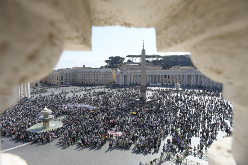 Köszöntelek mindannyiatokat, rómaiak és különböző országokból érkezett zarándokok! Külön köszöntöm a „Medee” nővéreket, akik most tartják egyetemes káptalanjukat, a Clairvaux-i Szent Bernát Szegény Lovagjainak Szövetségét, a nemzetközi találkozójukra összegyűlt afrikai vállalkozókat, az Estből, Cavallinóból és a Velence melletti Ca’ Vióból érkezett hívőket, valamint a galzignanói bérmálkozó fiatalokat.