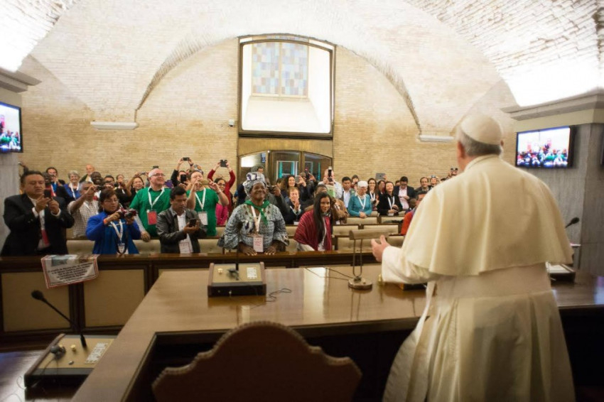 Peter Turkson bíboros, az Igazságosság és Béke Pápai Tanácsának elnöke a Szentatyát köszöntő rövid beszédében kiemelte, hogy a vatikáni dikasztérium a Társadalomtudományi Pápai Akadémia és az érintett mozgalmak vezetőivel együttműködésben szervezte a most zajló kongresszust. A találkozó célja, hogy megszilárdítsa a népmozgalmak hálózatát, elősegítse a kölcsönös megismerést és az együttműködést e mozgalmak és a helyi egyházak között, amelyeket a világ különböző részéről érkezett püspökök és pasztorális munkatársaik képviselnek. Mindannyian elkötelezetten dolgoznak az emberi méltóság és az emberi jogok előmozdításáért és védelméért.