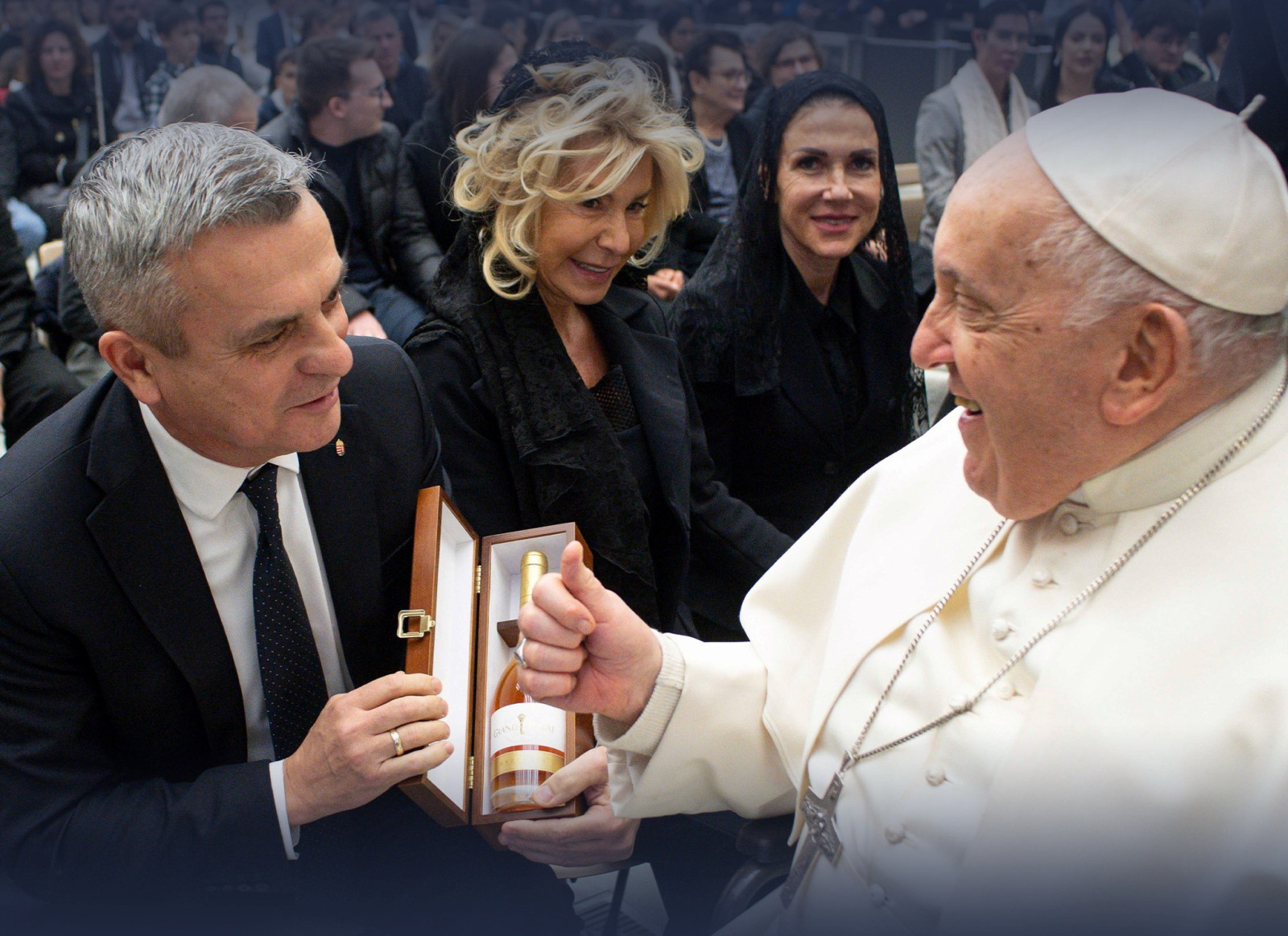 „Audienciára érkeztünk a Szentatyához, hogy Szent János ünnepén apostoli áldását kérjük a tokaji aszúra, illetve azon keresztül a magyar borra, az istenfélő magyar borászok munkájára” – osztotta meg közösségi oldalán december 27-én Rókusfalvy Pál kormánybiztos.