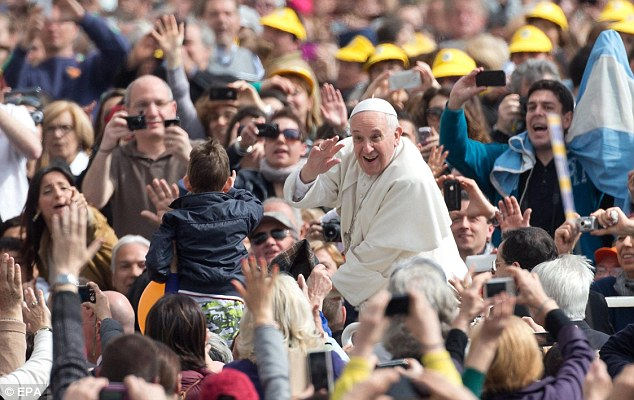 Hatalmas lelkesedés fogadta Bergoglio pápát a Szent Péter téren, amely ezen a szerdán is teljesen megtelt több mint százezer hívővel. éppen egy évvel ezelőtt március 19-én, Szent József ünnepén kezdte meg péteri szolgálatát Ferenc pápa a Szent Péter téren bemutatott szentmisével, amelyen közel 200 ezren vettek részt és több mint 130 ország képviseltette magát küldöttséggel. Számos csoport köszöntötte jókívánságokkal az első évfordulón a pápát, aki bár késéssel érkezett a térre, szokásának megfelelően körbe járt pápamobilján és üdvözölte a zarándokokat.