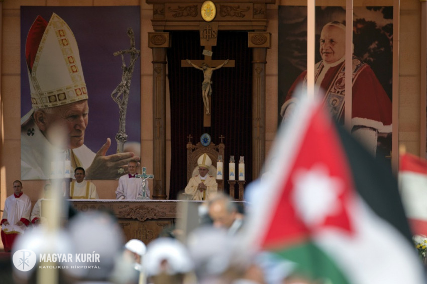 Kedves barátok! Kedves testvérek! A Szentlélek leszállt Jézusra a Jordán közelében és elindította megváltó művét, hogy megszabadítsa a világot a bűntől és a haláltól. Kérjük tőle, hogy készítse fel szívünket a találkozásra testvéreinkkel a gondolkodás, a nyelv, a kultúra és a vallás különbözősége ellenére. Kenje fel egész létünket irgalmasságának olajával, amely meggyógyítja a hibák, a meg nem értések, az ellentétek sebeit. Kérjük a kegyelmet, hogy alázattal és szelídséggel indítson küldetésre bennünket a béke keresésének fáradságos, de termékeny útjain – zárta homíliáját Ferenc pápa szombaton délután az ammáni stadionban megtartott szentmiséjén.