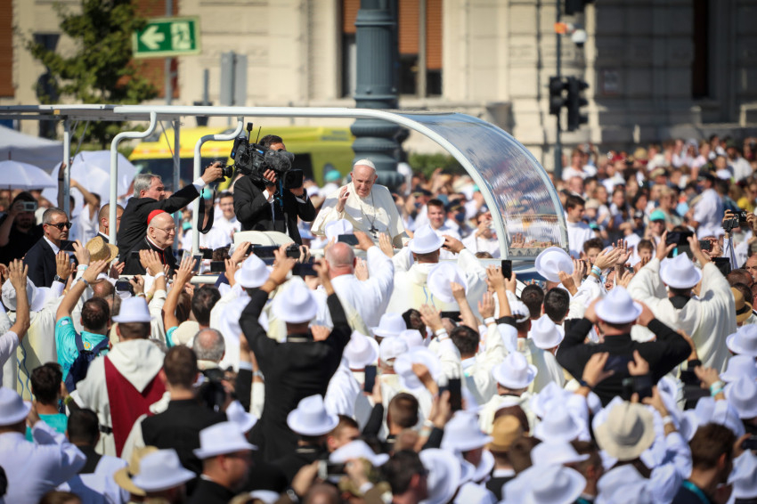Fotó: Merényi Zita (Ferenc pápa az 52. Nemzetközi Eucharisztikus Kongresszus Statio Orbis szentmiséjén a Hősök terén, Budapest, 2021. szeptember 12.)