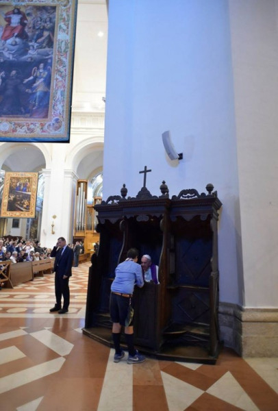Ferenc pápa a csütörtök délutáni porziunculai villámlátogatása során – programon kívül – arra kérte a jelenlevő ferences atyákat és püspököket, hogy „induljanak vele együtt a gyóntatószékekbe és álljanak készen a megbocsátásra”. Ferenc pápa elöl járt a jó példával és tizenkilenc személyt gyóntatott meg, köztük négy cserkészt, két papot, egy ferences testvért, egy tolókocsis idős asszonyt és több önkéntest. Ferenc pápa körülbelül egy órán át tartózkodott a gyóntatófülkében és hallgatta a bűnvallomásokat.