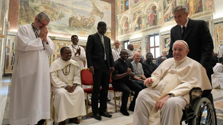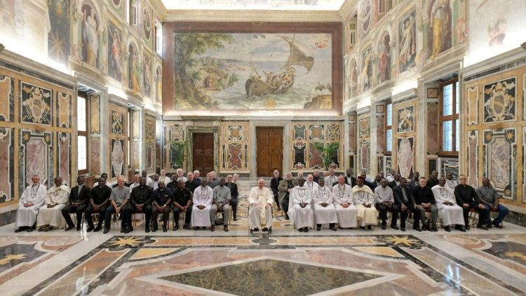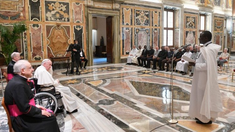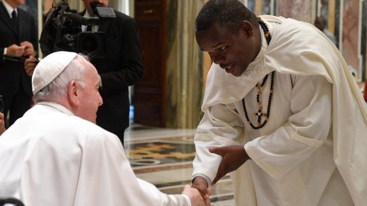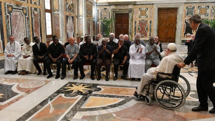 A Fehér Atyák testvérisége is számos különböző országból, kultúrából származó tagokból áll. Nem könnyű kihívás ez, csak a Szentlélek segítségével lehet elfogadni. De ez a kis közösség, amely imából és testvériségből táplálkozik, arra hivatott, hogy párbeszédet folytasson a környezettel, amelyben él, a helyi emberekkel, kultúrával. Ebben a közegben a szegénységen túl gyakran találkoznak a biztonság és a kiszámítható élet hiányával. Itt élik meg az evangelizálás édes örömét. Ezt a kifejezést használta Szent VI. Pál pápa Evangelii nuntiandi kezdetű apostoli buzdításában. Az evangelizálás az Egyház küldetése, az Egyház öröme. Vegyétek kezetekbe ezt a buzdítást, ami ma is érvényes, nagyon sok megfontolandó támpontot ad majd a misszióhoz – biztatta Ferenc pápa a Fehér Atyák kongregációjának tagjait, majd az Afrikai Miasszonyunk oltalmába ajánlotta és megáldotta őket.