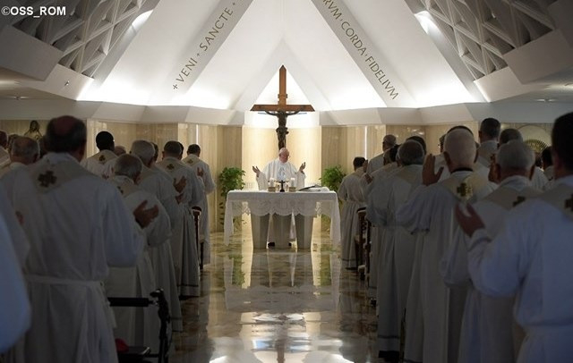 Ebben – mármint az imában – a nyugalmazott nunciusok jeleskednek igazán. Testvérként többet imádkoznak, kell is, hogy többet imádkozzanak aktív nuncius testvéreikért, akik a világban működnek. De a hivatalban lévő nunciusnak sem szabad elfeledkezni erről az imádságról, hogy a Gazda jól növelje, amit elvetett. Háromféle nyitás, kilépés, három mód, amellyel Jézus Krisztust és az egyházat szolgálják. Az egyház pedig hálás köszönetet mond nekik ezért a három kilépésért, mint ahogy személy szerint a pápa is megköszöni munkájukat: sokszor csodálattal veszi kézbe kora reggel a nunciusoktól érkező értesítőket, lám, milyen jól végzik a dolgukat. Az Úr adja meg nekik a kegyelmet, hogy mindig naprakészek legyenek ebben a három dologban, kilépve önmagukból – fejezte be végül szombat reggeli homíliáját Ferenc pápa.