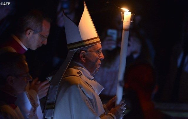 Minderre az asszonyok, Jézus tanítványai tanítanak meg minket. Ők virrasztanak azon az éjszakán, Jézus anyjával együtt. Ő pedig, a Szűzanya segítette őket, hogy el ne veszítsék hitüket s reményüket. Így nem maradtak félelmük s fájdalmuk fogságában, hanem kora hajnalban elindultak, kezükben kenettel, szeretettel felkent szívvel. Elindultak. Rátaláltak a nyitott sírra. Beléptek. Tehát virrasztottak, majd elindultak, és beléptek a misztériumba. Tanuljunk meg tőlük virrasztani Istennel együtt, Máriával, anyánkkal együtt, hogy be tudjunk lépni a misztériumba, amely átvezet minket a halálból az életre.