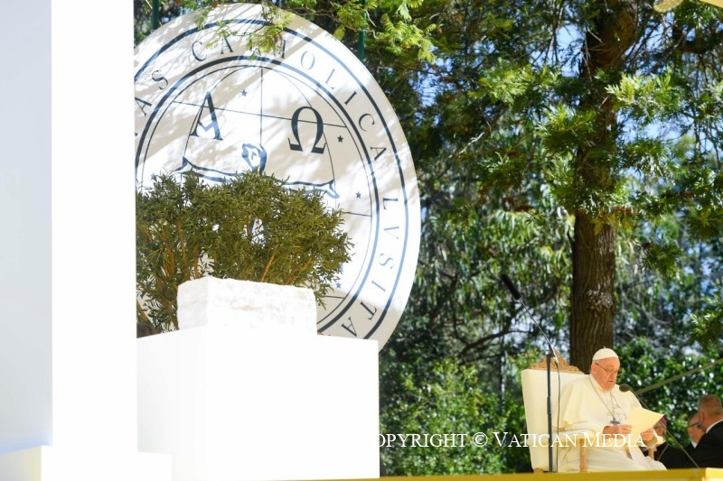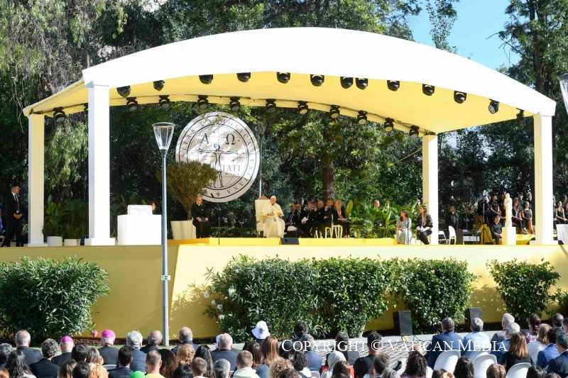 Barátaim, nagy örömmel látom, hogy élő nevelő közösség vagytok, mely nyitott a valóságra, és tudatában van annak, hogy az evangélium nem puszta dísz, hanem életet ad a részeknek és az egésznek. Tudom, hogy képzési tervetek több területet foglal magában: tanulmányok, barátság, társadalmi szolgálat, polgári és politikai felelősségvállalás, a közös otthonról való gondoskodás, művészi kifejezésmódok. Katolikus egyetemnek lenni mindenekelőtt ezt jelenti: hogy minden összetevő kapcsolatban áll az egésszel, és hogy az egész a részekben található. Ily módon a tudományos ismeretek elsajátítása mellett az ember személyként, önmaga megismerésében és saját útjának felismerésében is érik. Útról lehet szó, labirintusról nem! Csak így tovább!