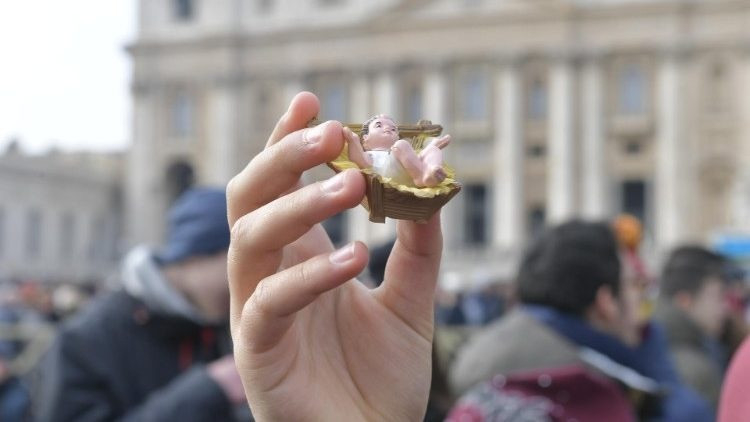 Most pedig főleg hozzátok fordulok, kedves római gyerekek, akik a „Jézuska-babák” megáldására jöttetek Ruzza segédpüspök kíséretében. Köszönetet mondok a Római Oratóriumok Központjának és az önkénteseknek. Kedves gyerekek, amikor majd otthon imádkoztok a jászol előtt, szemeteket a kis Jézusra szegezve, ámulatot éreztek majd. Most azt kérdezhetitek, mi az az ámulat. Egy erősebb érzés, erősebb, mint egy szokásos érzelem. Azért tölt el bennünket, mert látjuk Istent: ámulatot érzünk az emberré lett Isten nagy misztériuma előtt. A Szentlélek pedig Jézus alázatosságát, gyengédségét és jóságát ülteti szívetekbe. Jézus jó, Jézus gyengéd, Jézus alázatos. Ez az igazi karácsony, az igazi születésünnep! Ne felejtsétek el! Legyen ilyen a karácsony számotokra és családtagjaitok számára! Áldásomat adom az összes „jézuskára”!