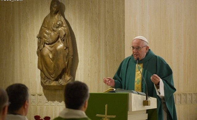 Az egyházban mindig ott leselkedik a korrupció kísértése. Ez akkor történik, amikor az egyház ahelyett, hogy hű lenne Jézushoz, a béke, az öröm és az üdvösség Urához, inkább a pénzhez és a hatalomhoz ragaszkodik. A Szentírásban a főpapok, írástudók a pénzhez, a hatalomhoz ragaszkodtak és megfeledkeztek a lélekről. És azért, hogy igazolják magukat, hogy elmondhassák, ők az igazak, ők a jók, az Úr szabadságának lelkületét felcserélték a merevségre. Jézus Máté evangéliuma 23. fejezetében beszél erről a merevségről. Az emberek elvesztették az Isten iránti érzéküket, de az öröm, a dicséret képességét is: már nem tudták dicsérni Istent, mert a pénzhez és a hatalomhoz ragaszkodtak, a világiasság egyik formájához, mint ahogy az Ószövetségben leírt esetben is tették.