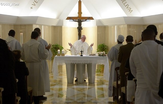 Homíliájának középpontjában a hétfői szentlecke állt az Apostolok cselekedeteiből, (ApCsel 6,8–15) amelyben az írástudók megrágalmazzák Istvánt, mert nem tudnak ellenállni bölcsességének és a Szentléleknek, amellyel eltelve beszélt. Hamis tanúkat bujtanak fel ellene, hogy elmondják: káromló szavakat használt Mózes és Isten ellen. Az isteni igazság előtt bezáródó szív csak a törvény igazságába kapaszkodik, sőt nem is annyira a törvény, mint a betű igazságába, és nem talál más kiutat, mint a hazugság, a hamis tanúzás és a halál útját. Jézus már megfeddte őket ezért a viselkedésükért, mert atyáik megölték a prófétákat, és most ők magasztalják ezeket a prófétákat. Az írástudók válasza pedig inkább cinikus, mint képmutató: ha mi atyáink idejében lettünk volna, mi is ugyanazt tettük volna. Így mossák kezeiket, és tisztának vallják magukat. De a szívük zárva van Isten szava előtt, az igazság előtt, Isten hírnöke előtt, aki elhozza a próféciát, hogy haladjon előre Isten népe.