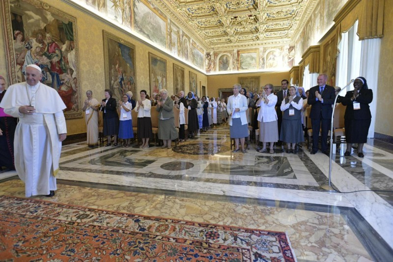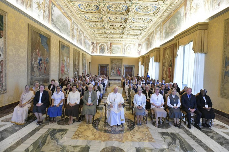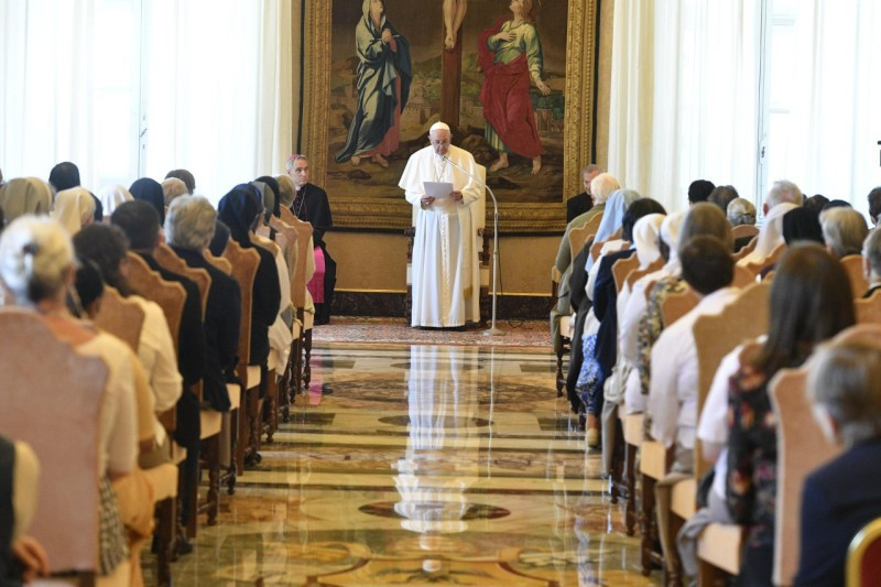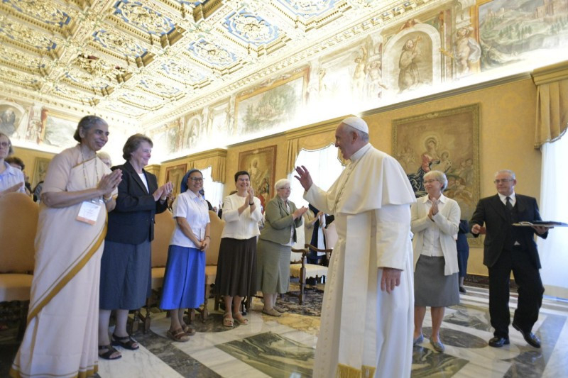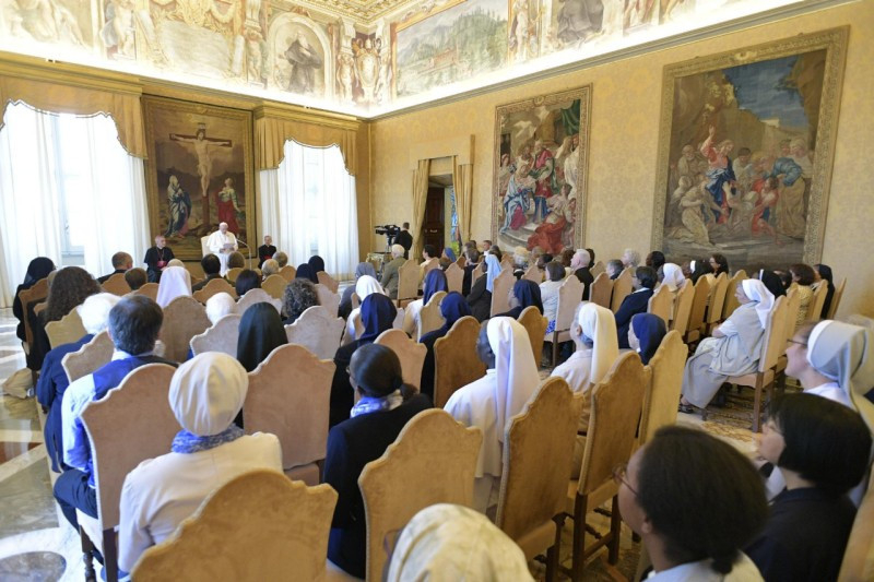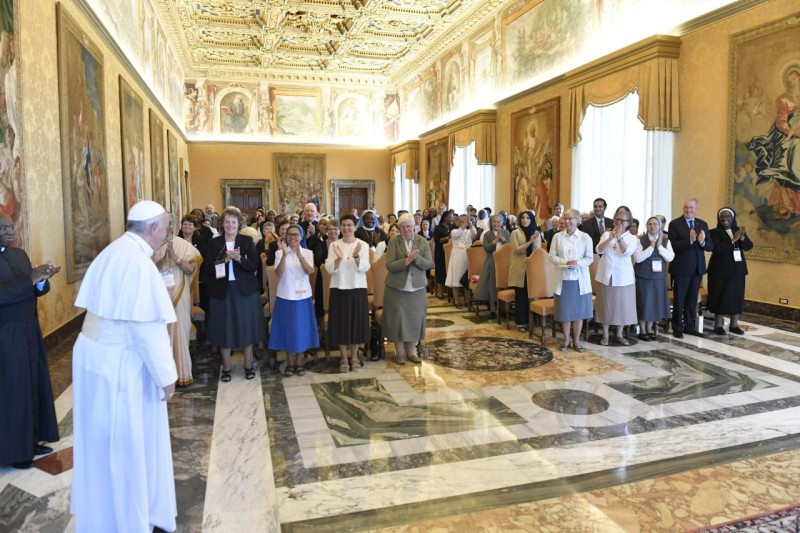 Mind a női, mind a férfi szerzetesi élet olyan út, amelynek szerzője a Szentlélek. Ő teremt „zűrzavart” az Egyházban a számos karizmával, ugyanakkor az Egyház összhangjának is ő a szerzője. Az Egyházban a Szentlélek adományaival, a Lélek szabadságával vagyunk jelen. Ez a karizmákban gazdag Egyház ad nekünk erőt – fejtette ki a pápa. Végül áldását adta és Szűz Mária oltalmába ajánlotta a Talitha Kum szándékait és jövőjét, imáiról biztosítva a szerzetesnővéreket. Egy tanáccsal búcsúzott tőlük Ferenc pápa: soha ne fejeződjön be a nap anélkül, hogy ne gondolnának az emberkereskedelem általuk megismert egy áldozatának tekintetére: ez szép imaként zárja majd le napjukat.