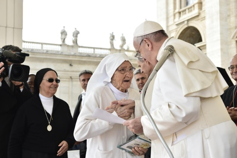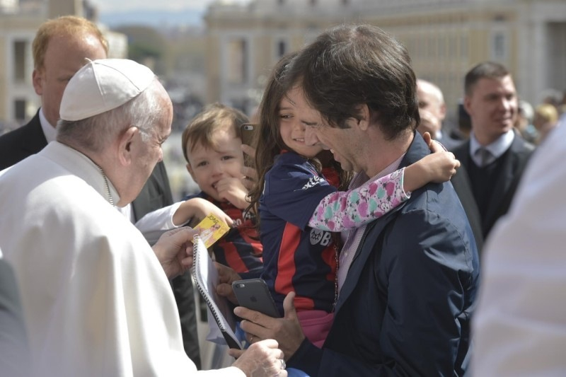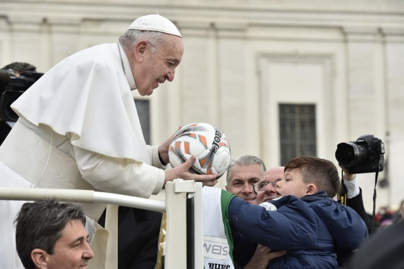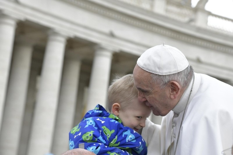 Egyszer egy nagy tömeg volt Jézus előtt; éhes emberek voltak. Jézus megkérdezte, van-e valakinek valamije, de csak egy gyermek akadt, aki hajlandó volt megosztani kis készletét: öt kenyeret és két halat. Jézus megsokszorozta ezt a nagylelkű gesztust (vö. Jn 6,9). Ez a gyermek megértette a Miatyánk leckéjét: az étel nem magántulajdon – ezt jegyezzük meg: az étel nem magántulajdon –, hanem megosztandó gondviselés, Isten kegyelmével.
