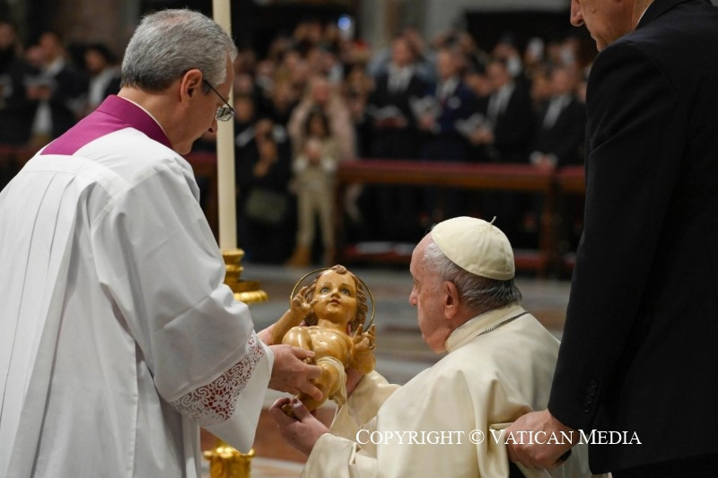 Isten ezt az utat, ezt a módot választotta, hogy belépjen a világba és a történelembe. És ez az mód annyira lényegi fontosságú, mint mint maga a tény, hogy eljött. Mária istenanyasága – szűzi anyaság, termékeny szüzesség – az a mód, amely megmutatja Isten szabadságunk iránti rendkívüli tiszteletét. Ő, aki nélkülünk teremtett bennünket, nem akar nélkülünk üdvözíteni bennünket (vö. Szent Ágoston: 169. beszéd, 13).