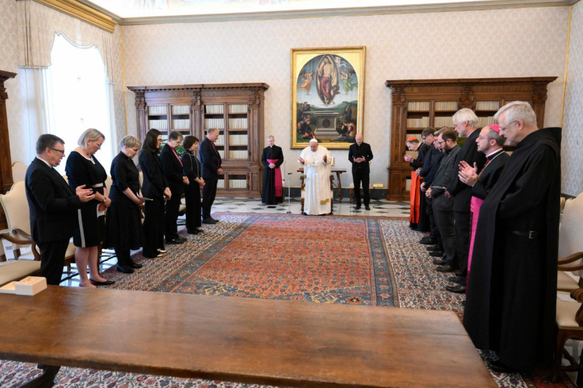 A pápa szeretettel köszöntötte a Lutheránus Világszövetség küldötteit, megköszönve Henrik Stubkjær püspöknek, a világszövetség új elnökének köszöntő szavait és az ajándékát, továbbá üdvözölte Anne Burghardt tiszteletes asszonyt, aki immár több éve dolgozik a világszövetség főtitkáraként.