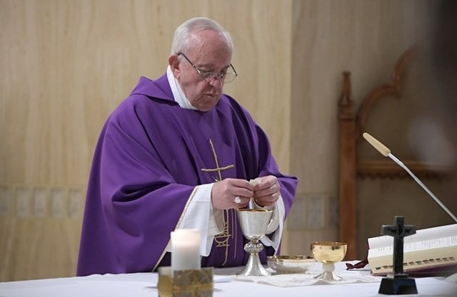 A bűnökkel és a romlottsággal szemben egyedül Jézus a törvény teljessége. A pápa a házasságtörő asszony János-evangéliumban szereplő történetéhez (Jn 8,1–11) kapcsolta homíliáját. Jézus ezt a választ adja a házasságtörésen kapott nő vádlóinak: „Az vesse rá az első követ, aki közületek bűn nélkül van!” A napi olvasmány Zsuzsanna és a vének története Dániel próféta könyvében, melyben a két idős bíró megrendez egy látszat-házasságtörést. Zsuzsanna kénytelen választani az Isten és a törvény iránti hűség, illetve a saját élete mentése között. Hűséges volt férjéhez – jegyezte meg a pápa –, még ha talán voltak is más bűnei, mert hiszen mind bűnösök vagyunk, csak a Szűzanya volt bűn nélküli asszony.