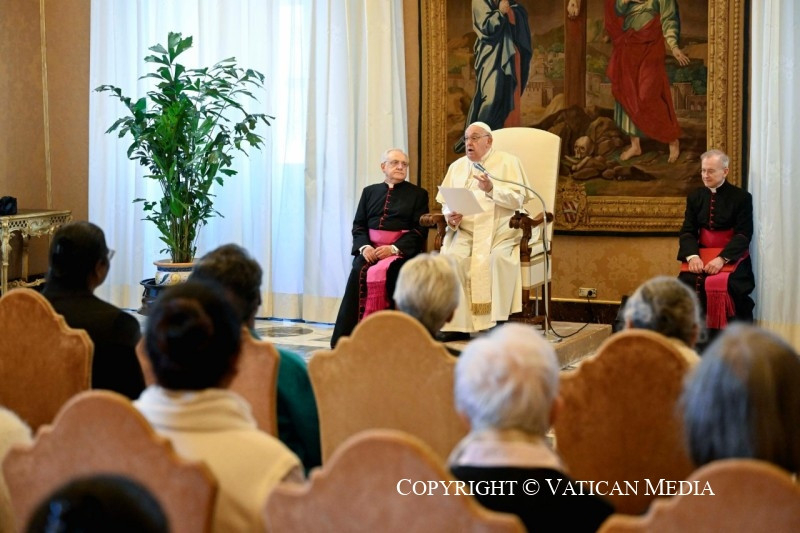 Végül Ferenc pápa arra buzdította a nővéreket, hogy legyenek „a kedvesség, ami a Lélek ajándéka, és az öröm hírnökei, akik minden találkozást ragyogó hálával élnek meg a másik iránt”. Biztatta őket arra is, hogy nyitottsággal, bátran és szükség esetén megújulásra készen folytassák küldetésüket, az életszentségben, a felkészültségben és a kedvességben gyökerezve.
