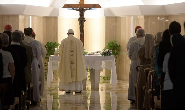 Szent Pál a korinthusiak közötti megosztottságról beszél kétezer évvel ezelőtt. A mai egyháznak is mondhatja ugyanezt Szent Pál. „Nem dicsérhetem, hogy nem javatokra, hanem károtokra gyűltök össze.” (1Kor 11,17) Károtokra, a megosztásra – tette hozzá a Szentatya. Azért gyűlnek össze, hogy bepiszkítsák Krisztus testét az Eucharisztia ünneplése során. Pál mondja nekünk egy másik helyen, hogy aki méltatlanul eszi vagy issza Krisztus Testét és Vérét, saját ítéletét eszi és issza. Kérjük az Úrtól az egyház egységét, hogy ne legyenek megosztottságok. Az egység az egyház gyökere, amely Krisztus áldozata, amelyet minden nap ünneplünk – zárta hétfő reggeli homíliáját Ferenc pápa.
