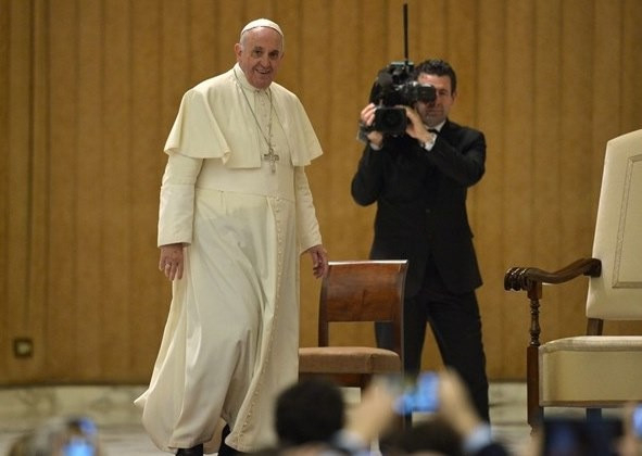 Ferenc pápa a TV2000 mintegy ezerkétszáz alkalmazottját fogadta a vatikáni VI. Pál-teremben.