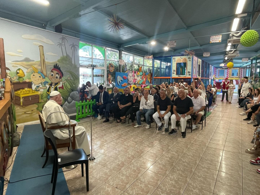 Mutatványosok, akrobaták, bohócok adtak műsort Ferenc pápa tiszteletére, aki az egyik fellépőtől, a kis Oscartól ajándékot is kapott: egy zenedobozt és egy levelet, valamint egy kék borítékot benne 5 euróval: „hogy vehess magadnak fagyit”.
