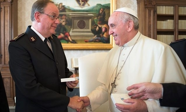 A pápa imádkozik, hogy a világban Krisztus minden tanítványa ugyanazzal a meggyőződéssel és dinamizmussal végezze szolgálatát, mint az Üdvhadsereg. A katolikusok és az Üdvhadsereg tagjai közötti különbségek teológiai és eszkatológiai kérdések terén ne akadályozzák a tanúságtételt az Isten és embertársaink iránti szeretetünkről. Ez a szeretet képes energikus erőfeszítésekre ösztönözni abban a tevékenységünkben, hogy visszaadjuk a társadalom peremére szorult személyek méltóságát – hangsúlyozta a Szentatya.