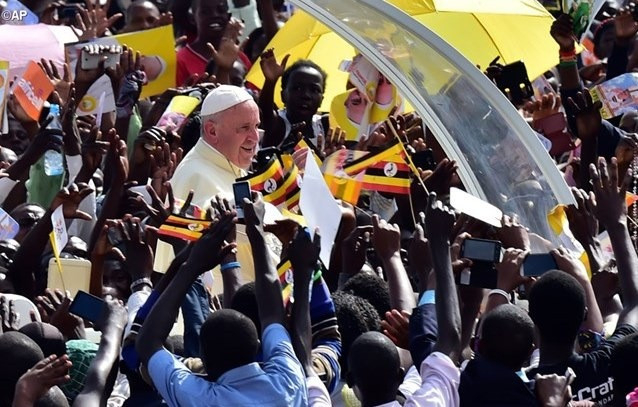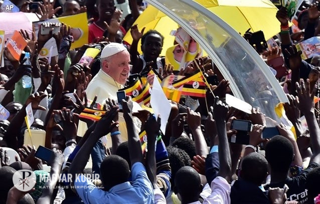 Készen álltok erre? Arra, hogy átalakítsátok a gyűlöletet szeretetté? A háborút békévé? – kérdezte a pápa, amelyre a fiatalok nagyon lelkesen, kórusban igennel feleltek. Majd így buzdította a Szentatya hallgatóságát: legyetek tudatában, hogy vértanúk népe vagytok, ezért van hitetek és életetek! Ezt a hitet és életet Afrika gyöngyének nevezik.